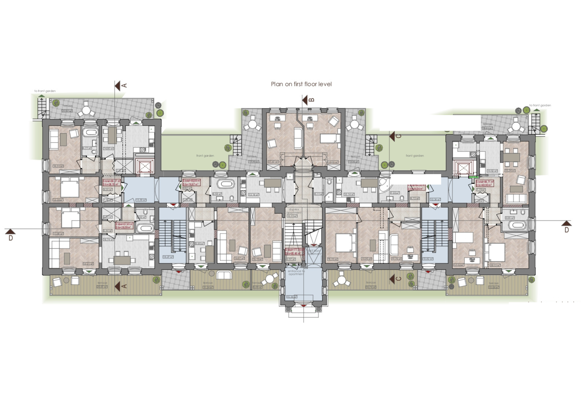 The main task was to re-plan the building of the medical facility into a residential one with the adjustment of facades and the arrangement of terraces