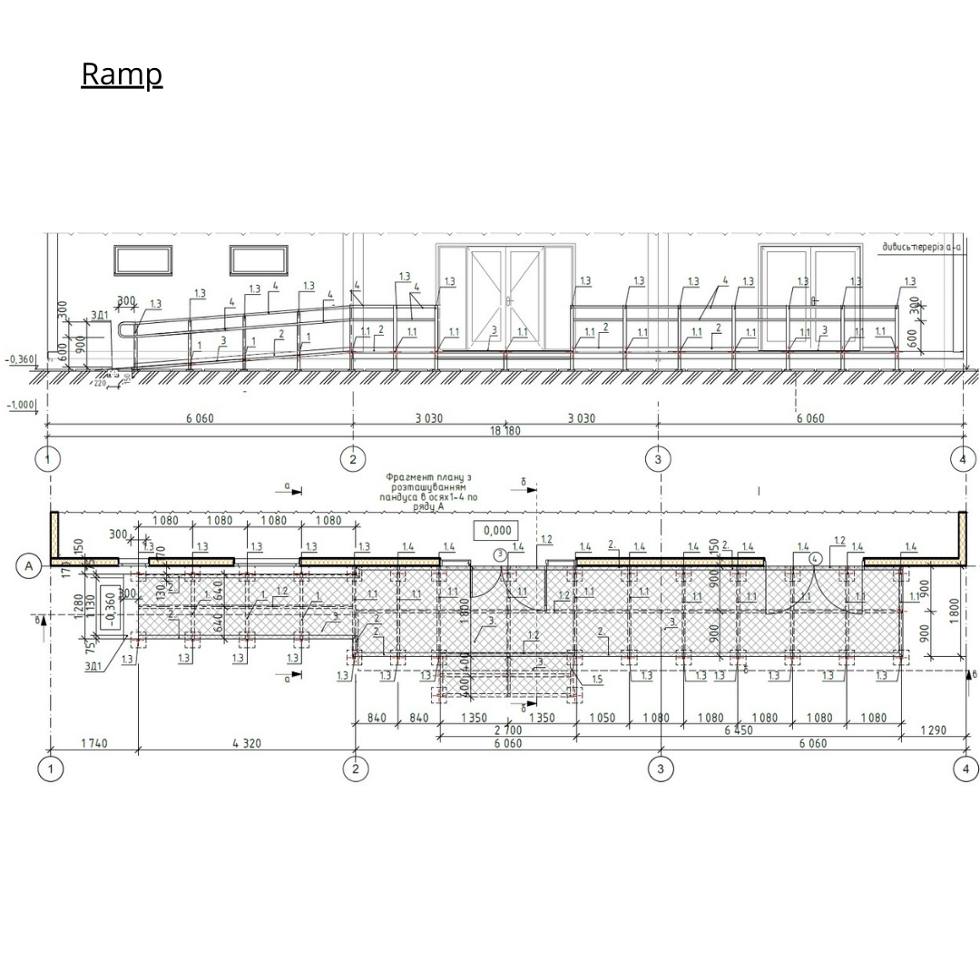 The project proposes screw piles as supports for the temporary building of the educational space and develops the design of the entrance, roof and ramp for visitors with disabilities. According to the conclusions of the geological report, which was completed in April 2025, the foundation for the metal piles of the temporary structure can be at a depth of 5m. It is loam with sandy inclusions and sand. The piles are screwed directly into the ground and can be dismantled in the same way.