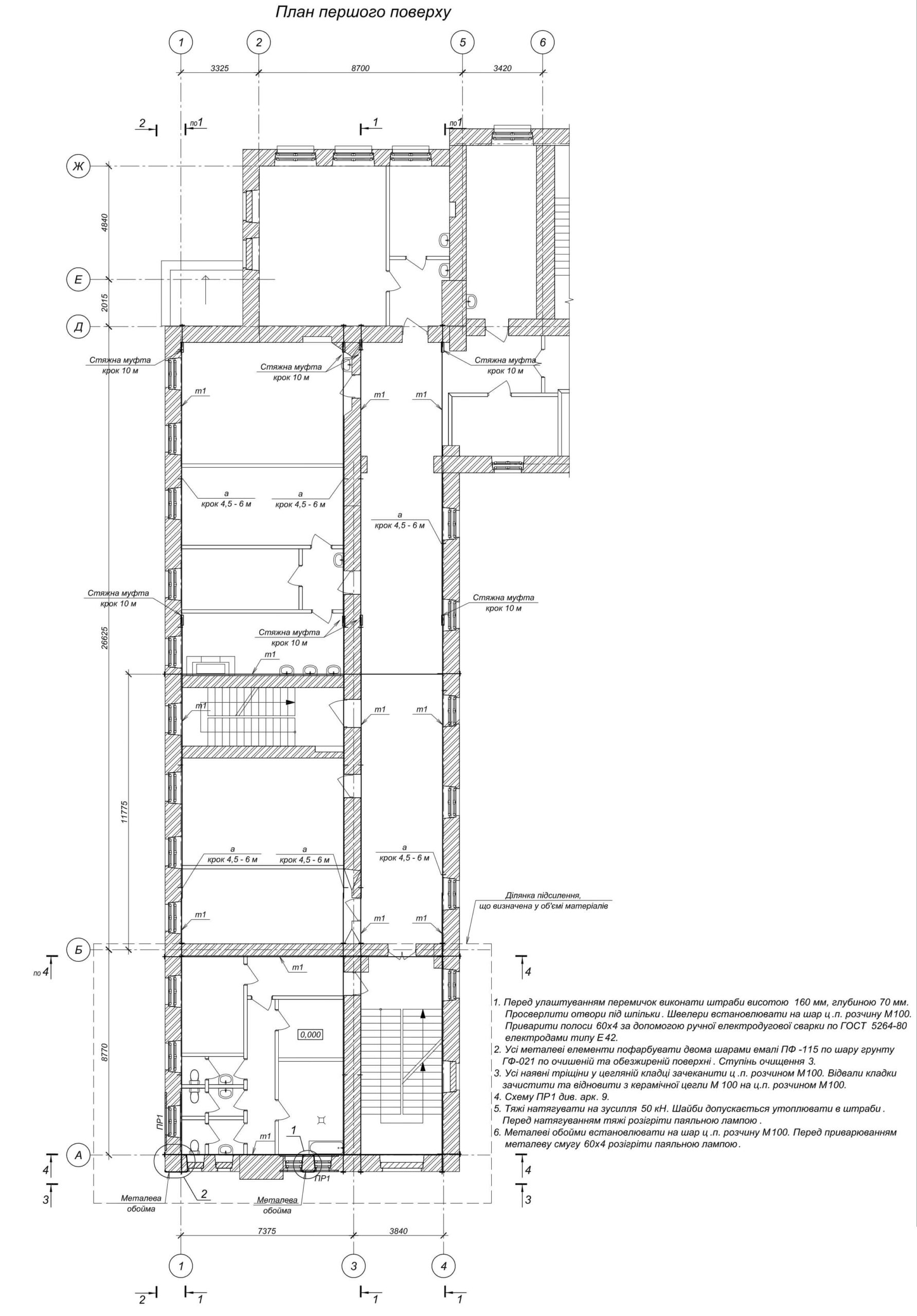 Ремонт (відновлення) приміщень, сходів, стін, ям (у контурі приміщень першого поверху). Нежитлова будівля – місцевий історичний пам’ятник “Будівля, де в березні 1943 року знаходився штаб Чехословацького батальйону”, охоронний номер 184, за адресою: Харків, провулок Руставелі, 10